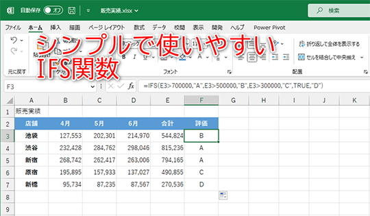 また、新しく追加された「IFS」を使うとネストを使わずに条件指定することができます。
