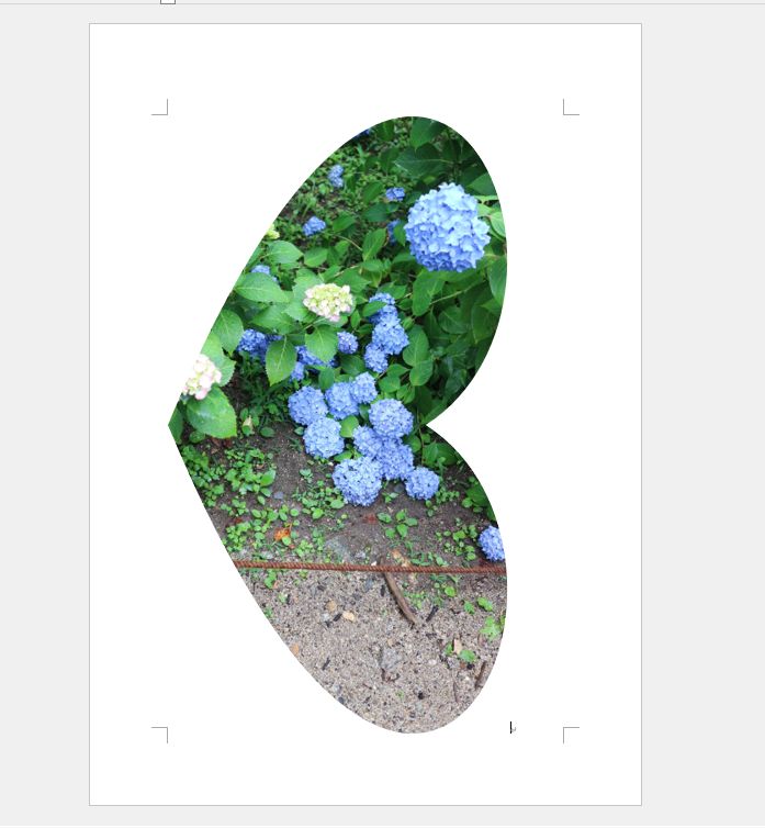 Wordの「図形に合わせてトリミング」は基本的に横置きの写真に使ったほうがよさそうですが、上の方法でなんとか図形が横を向いてしまうことは解消できたので良しとしましょう…。