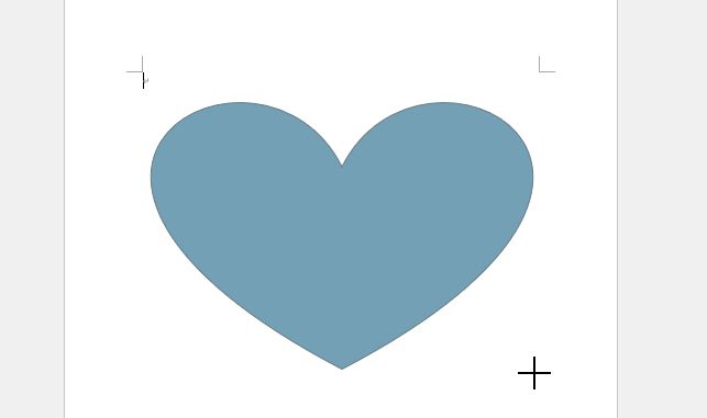 「挿入」タブにある「図形」をクリック、「ハート」をクリックして、用紙上にマウスポインタを移動し、斜め下にドラッグしてハートを挿入します。
